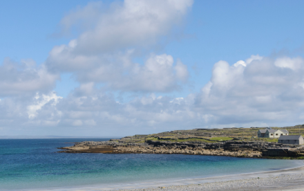 Gurteen Bay, the twin beach to Dogs Bay, has sand that is not comprised of traditional limestone but rather made entirely of fragments of seashells which give it a pure white colour, a visual delight.