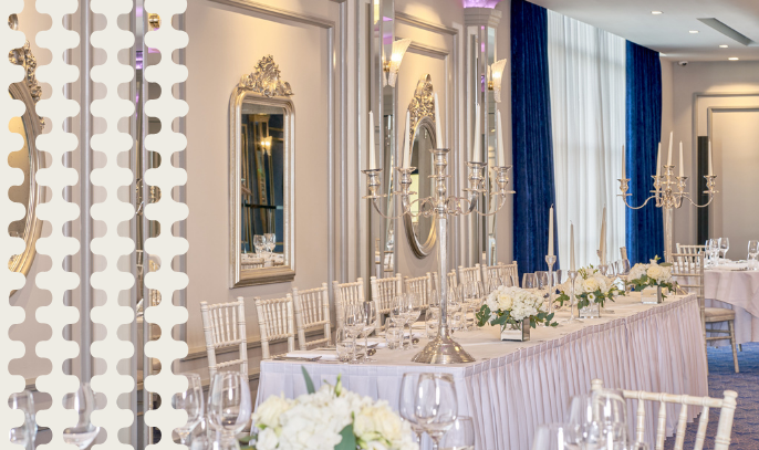 The vision starts with the space: a series of magnificent backdrops where your love story unfolds. The glittering Grand Salon, with panoramic windows and awe-inspiring crystal bauble installation, becomes the stage for your drinks reception. Passed canapes, champagne, and music drifting across the room from our grand piano. The glorious ballroom, looking out over serene Lough Atalia, shimmering with chandeliers and filled to the brim with everyone who loves you the most. And minutes away, iconic photo opportunities all around gorgeous Galway city, the charming Claddagh, and the wild Atlantic coast.